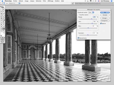 Allez dans le menu image>réglages>mélangeur de couches. |