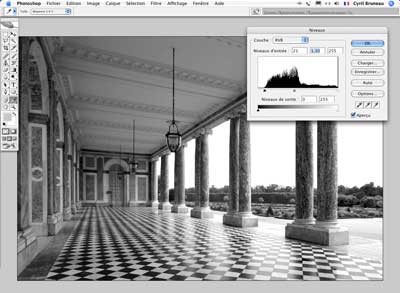Allez dans le menu image>réglages>niveaux (ou commande+L). |